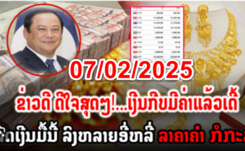 ອັບເດດລ່າສຸດ…!!! ລາຄາຄຳ, ລາຄານໍ້າມັນ ແລະ ອັດຕາແລກປ່ຽນປະຈໍາວັນທີ 07/02/2025 Read More